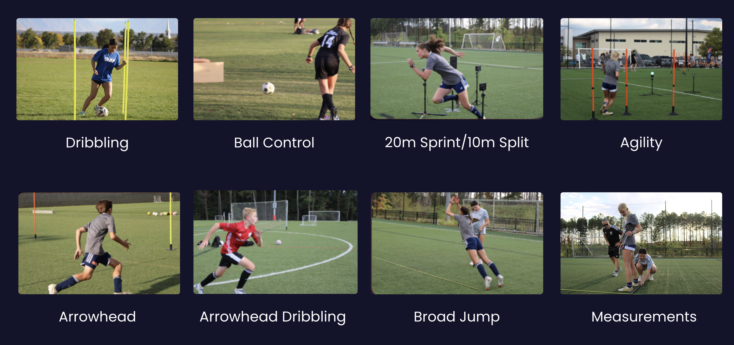 With input from professional soccer coaches and sports data scientists, we have defined 8 skill tests as critical to understanding a player’s technical and physical capacity in soccer. These tests are run under the supervision of the Skillmasters Professional Team.