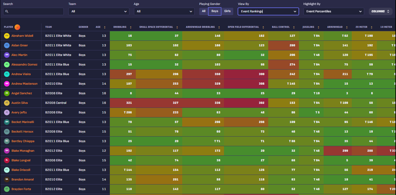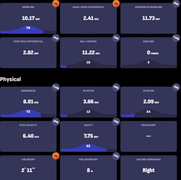 All testing will be conducted using laser gates and precise measurements to ensure accuracy. This allows our staff to assess how players rank among the 150,000+ soccer players who have already been through these assessments.
